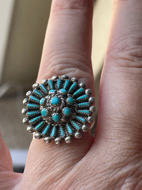 Turquoise Petit Point Ring - Sterling Silver - Vintage