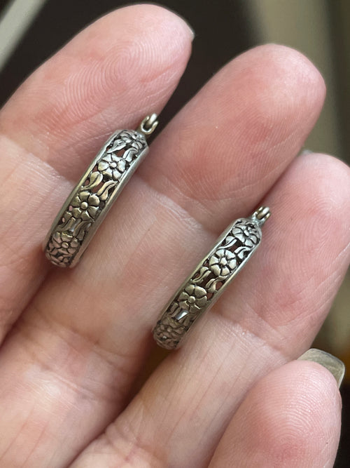 Vintage earrings and Antique earrings are a perfect way to add a little sparkle to your outfit. At Vintage Paris Jewelry vintage gold earrings tend to be the most popular, but we also have a large selection of sterling silver earrings and also many earrings that are made with a variety of precious metals and stones. We feature earrings made from yellow gold, and white gold as well as gold-filled and sterling silver from various eras from as recent as the 1990s all the way back to the Victorian era and everything in between (1970s-1980s, Mid-Century, Art Nouveau, and Art Deco). Gemstones include Turquoise, Coral, Amethyst, Opal, Moonstone, Garnet, Ruby, Emerald, Pearl, Aquamarine, Citrine, Jade, and Diamond.