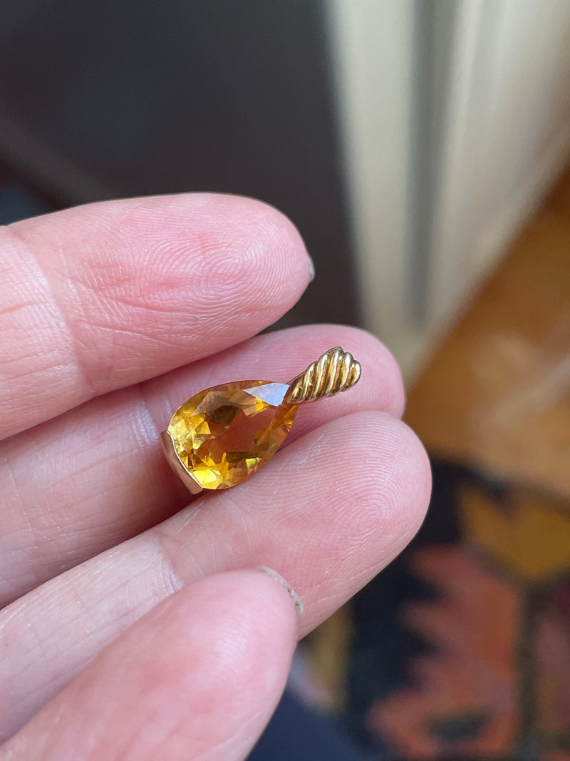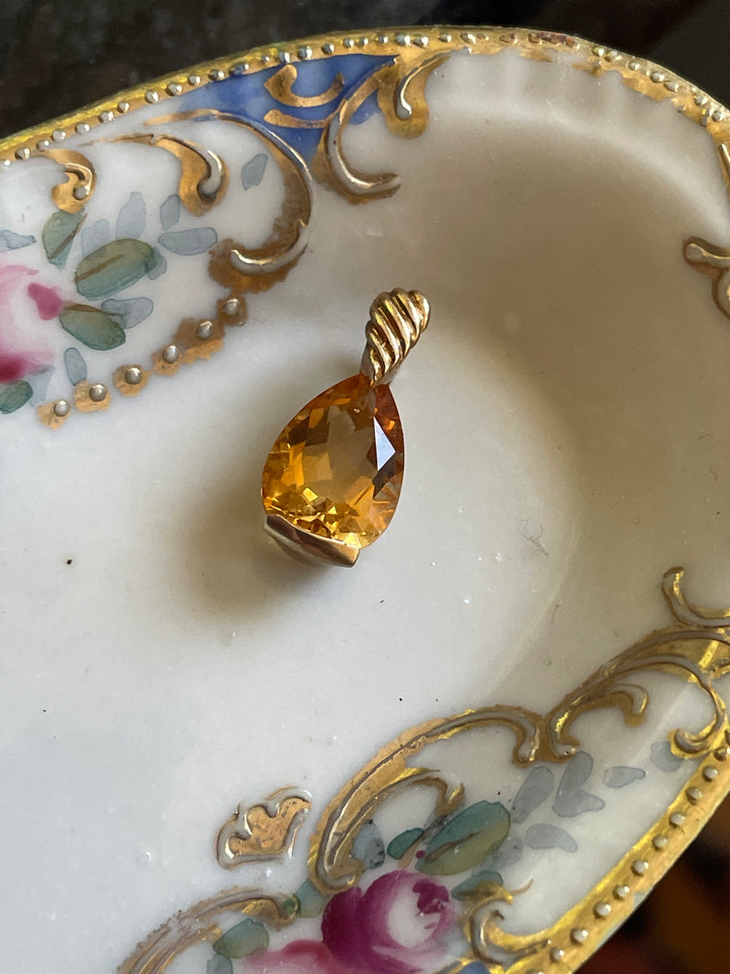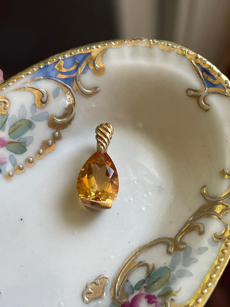 Citrine Teardrop Pendant - 14k Gold - Vintage