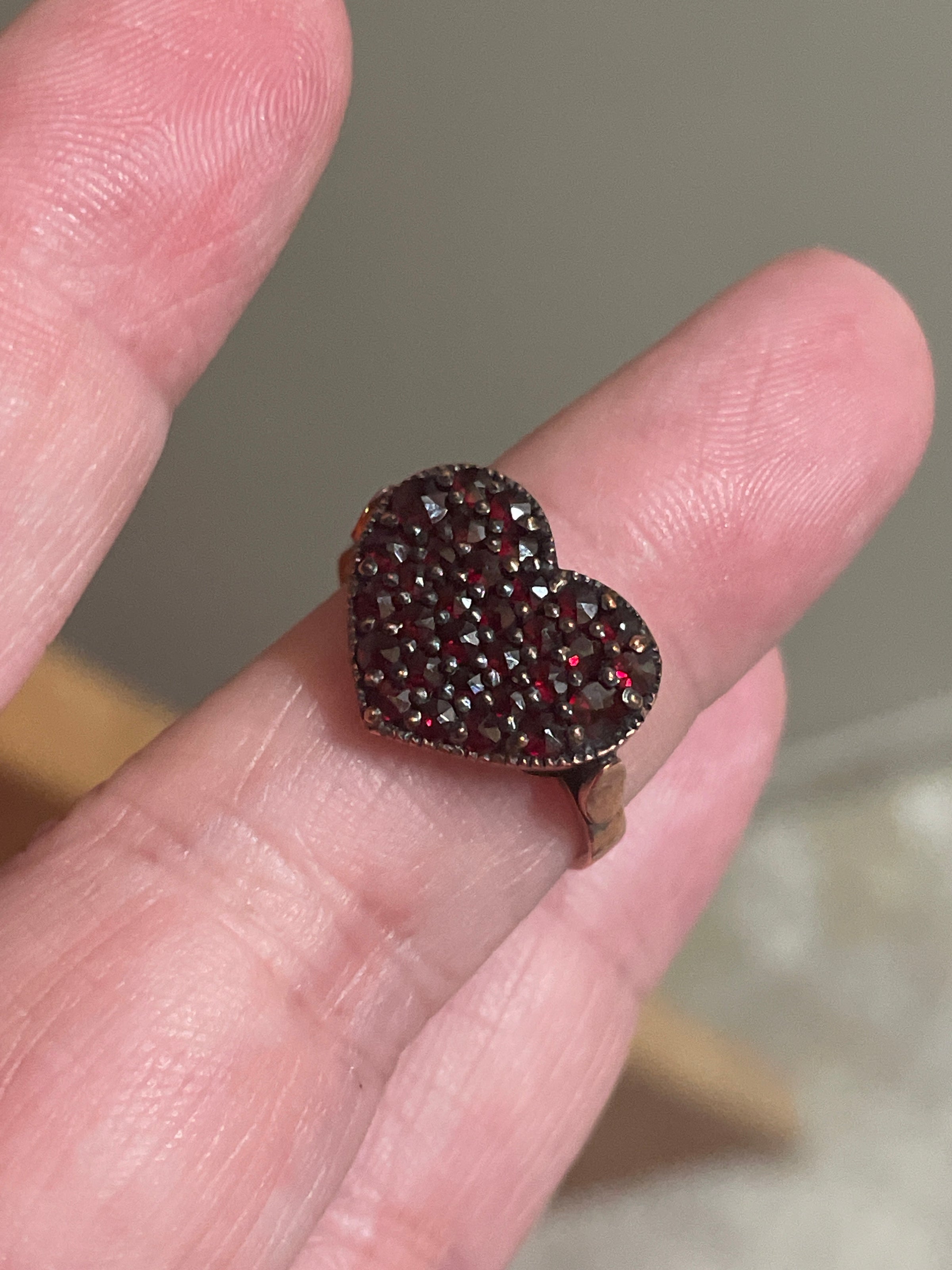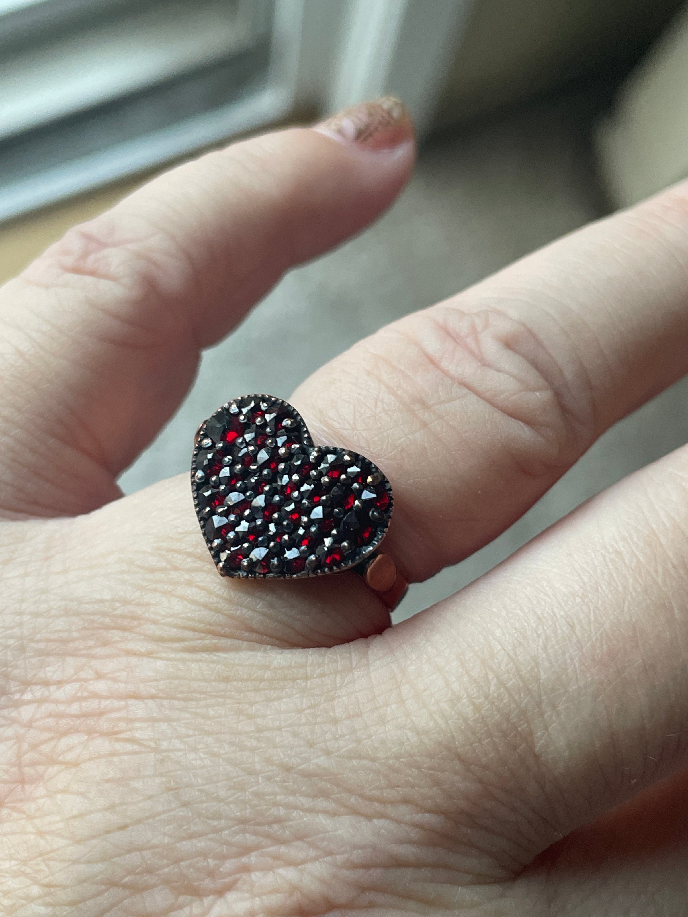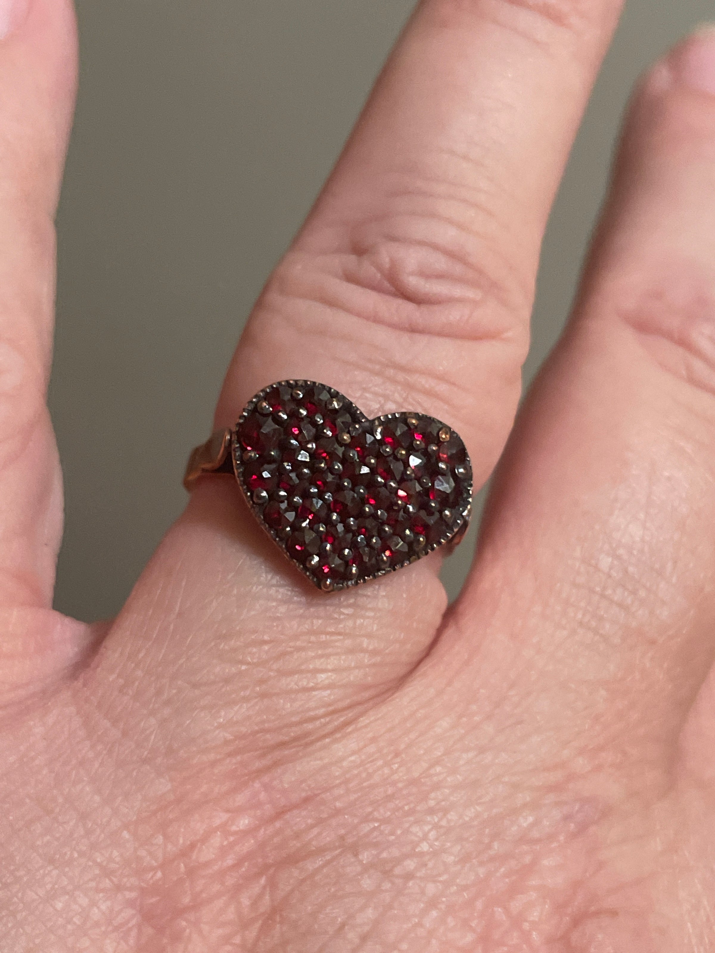 Bohemian Garnet Heart Ring - Rose Gold over Sterling - Vintage