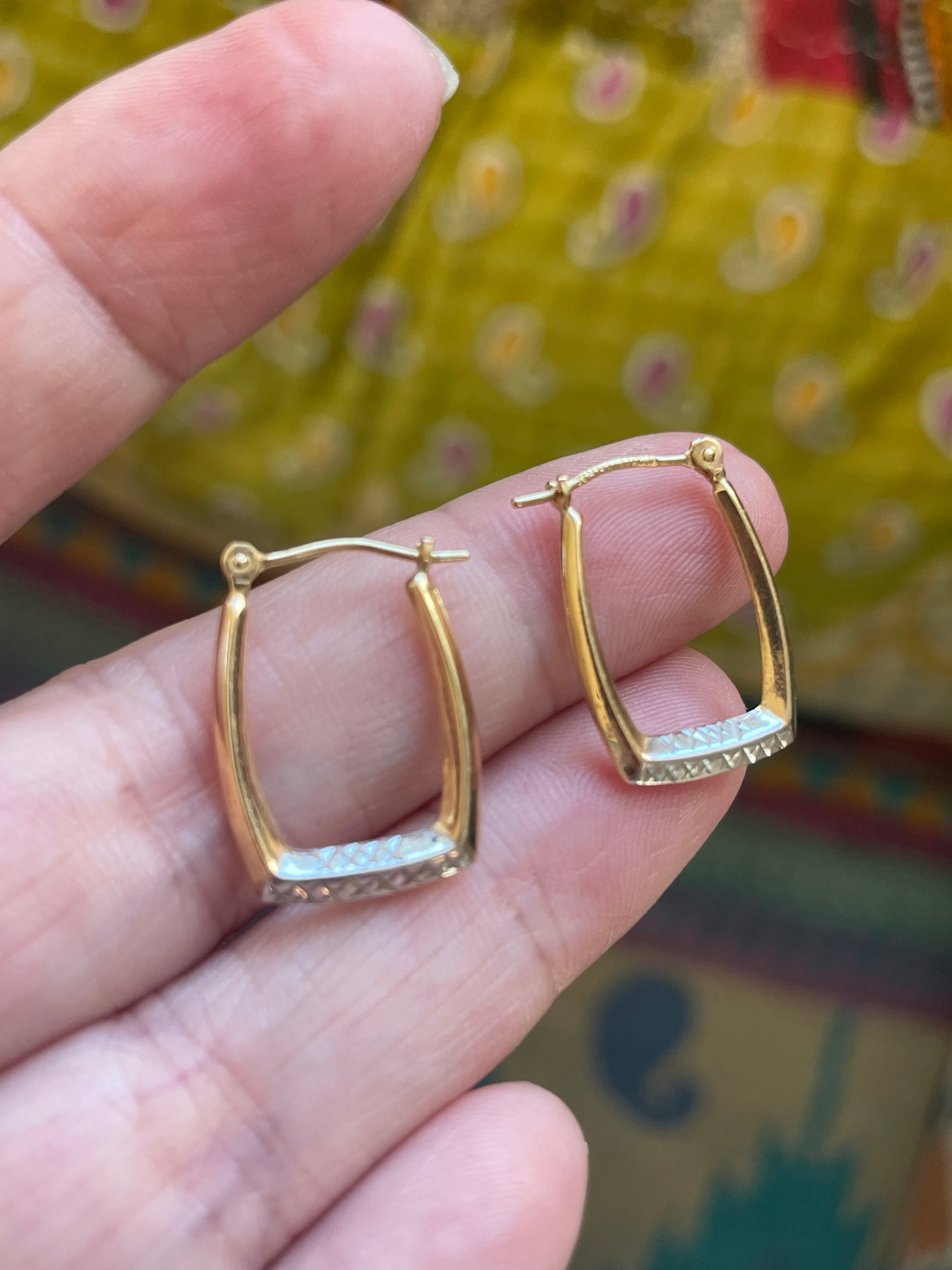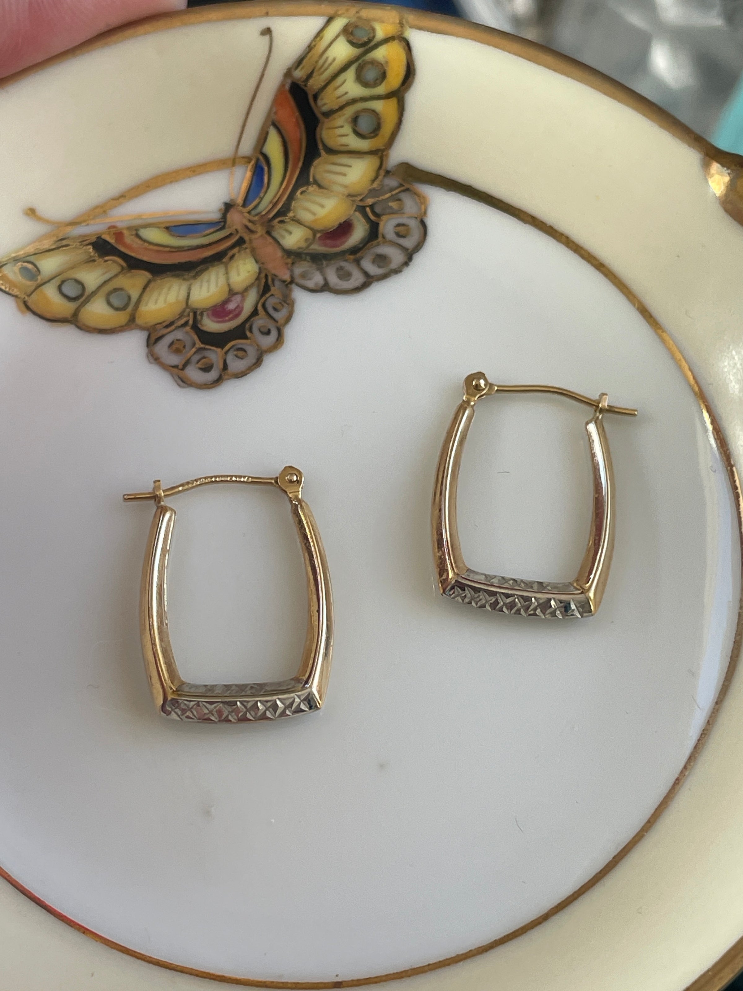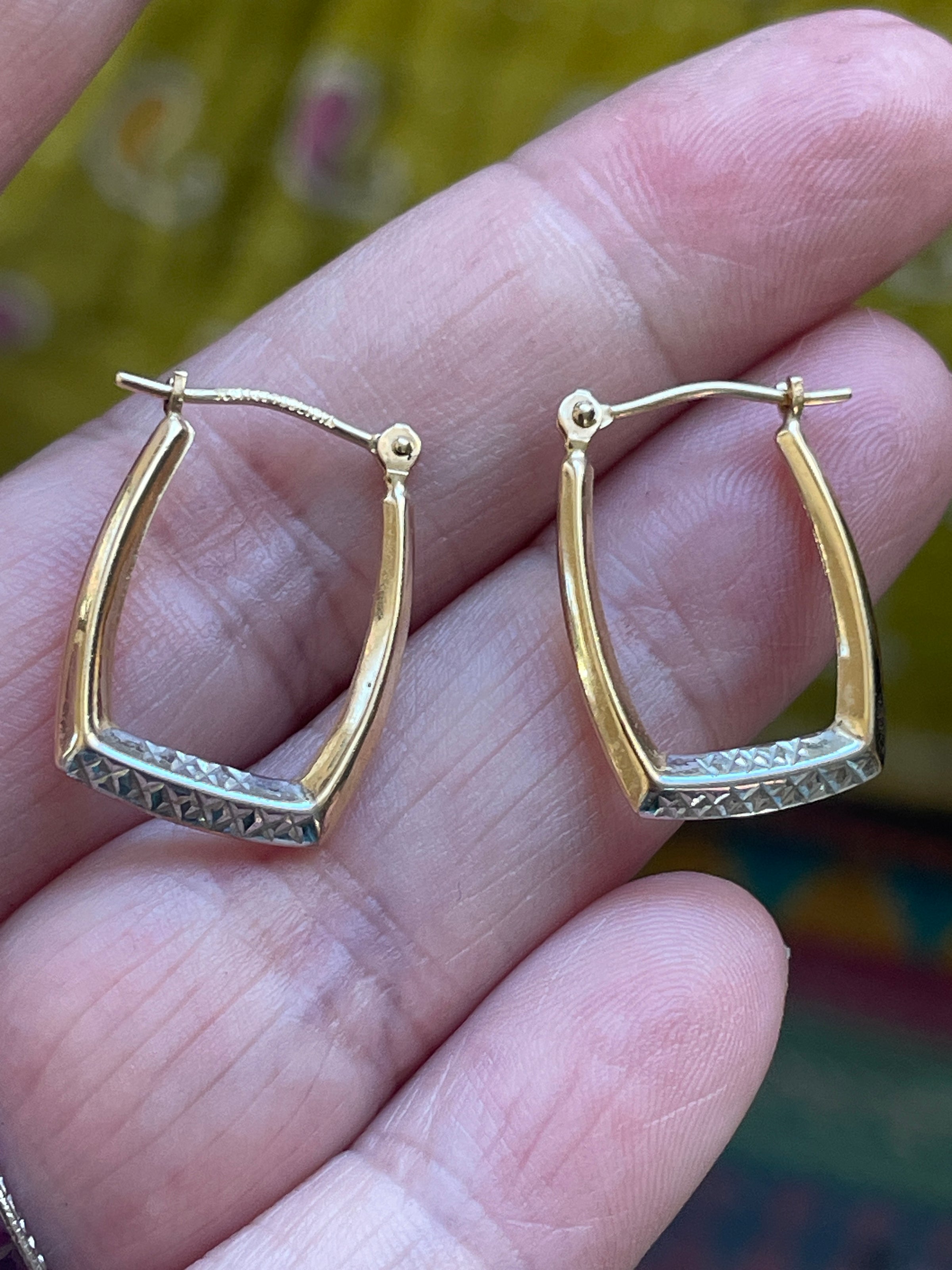 Rectangular Hoop Earrings - 14k White and Yellow Gold - Vintage